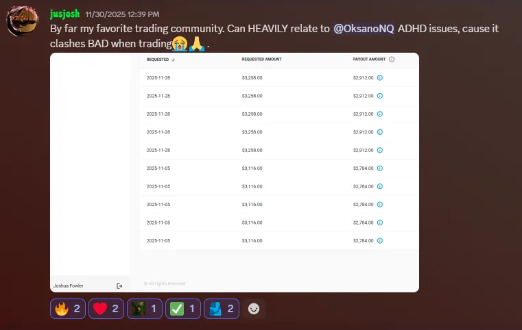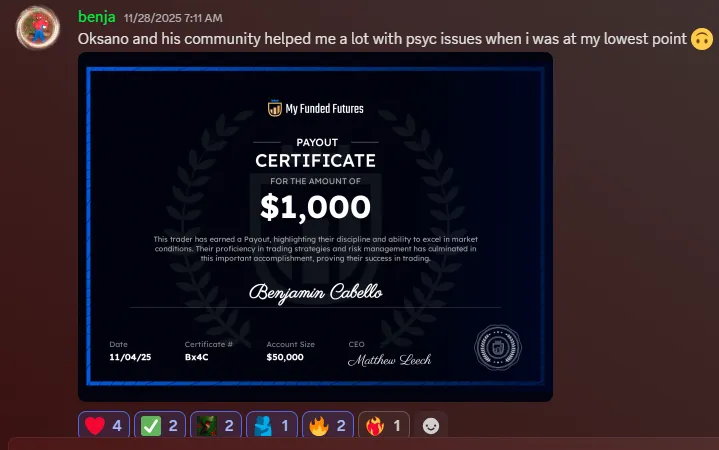 Four times a year, I run structured accountability challenges that test your ability to apply psychology under real market pressure—with the chance to win a funded prop account. The format forces you to take just one high-quality trade per day for a full month, breaking destructive habits and sharpening discipline. Struggling traders who complete this challenge often reach their first payout shortly after because of how dramatically it improves their plan and mental game.